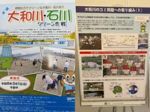 当日はたくさんの方が参加されていて、我が町のシンボルの一つである大和川のゴミ拾いを行いました。