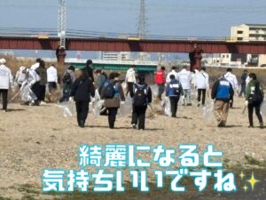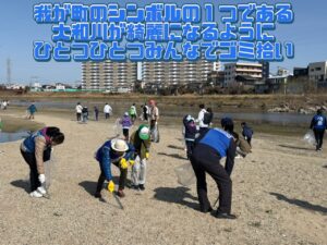 当日はたくさんの方が参加されていて、我が町のシンボルの一つである大和川のゴミ拾いを行いました。